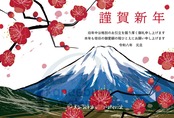新年の挨拶にぴったりな富士山と梅の華やかなデザイン。